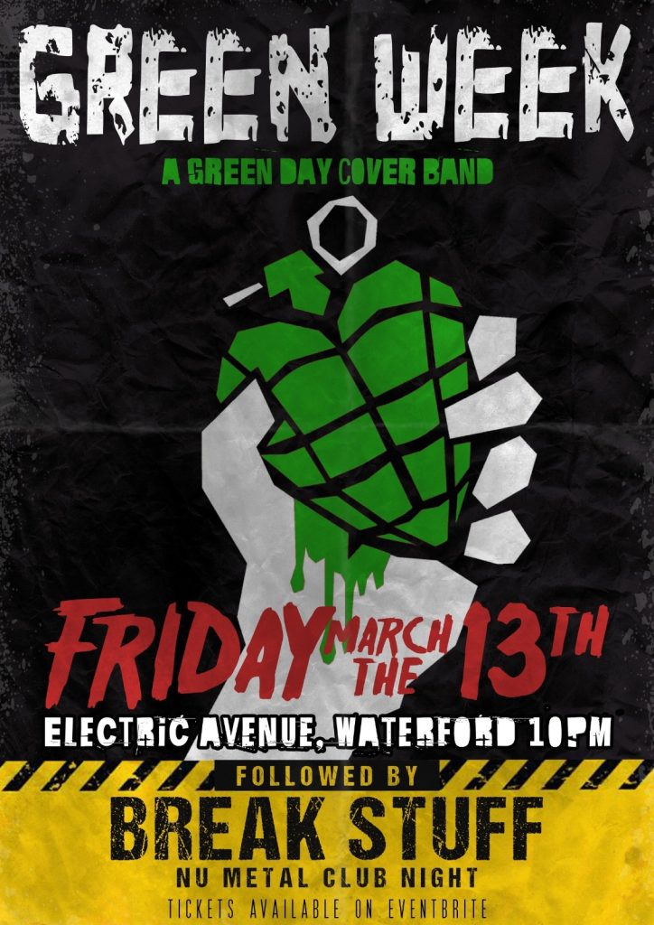 Green Week band come to Electric Avenue Waterford for a night with all the greatest hits of Green Day .